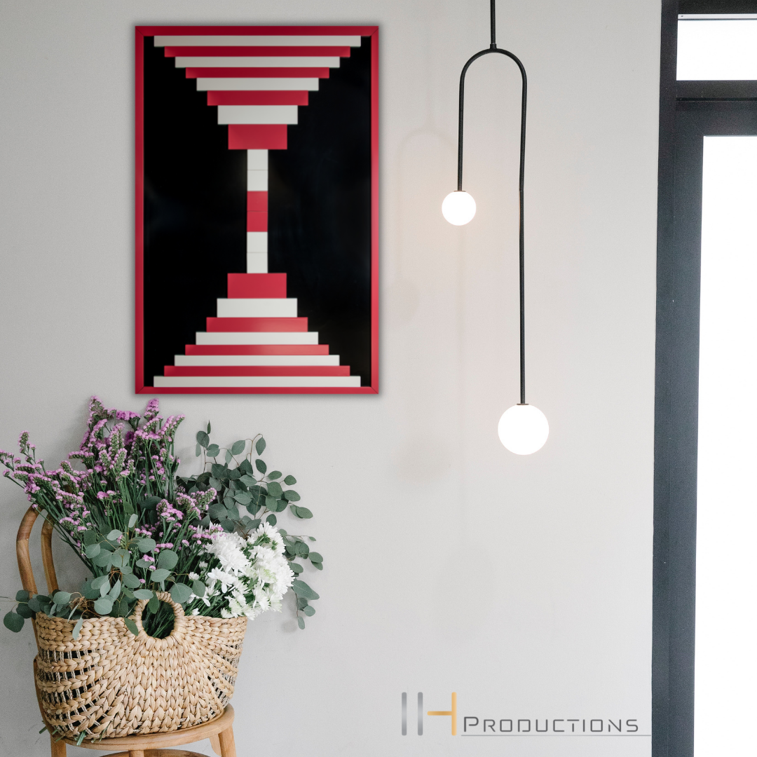 Geometric Wood Wall Art Rectangle (Red, Black and White)
