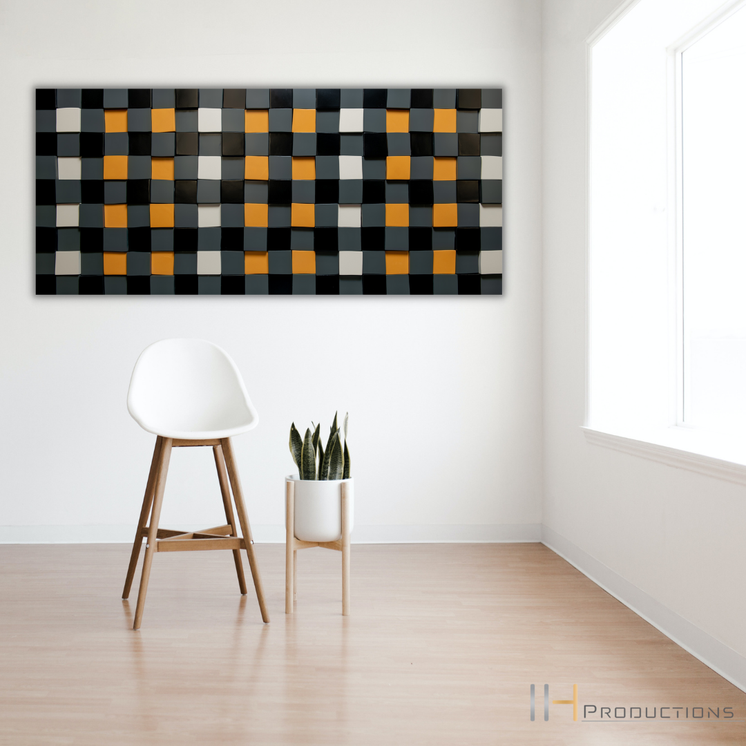 Mid Century Geometric Wood Art square(Grey, Yellow and Black)