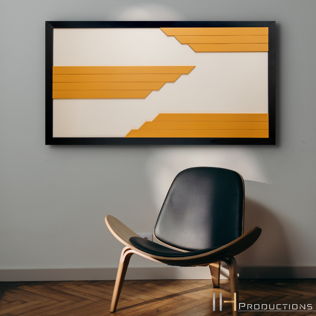 Geometric Wood Wall Art Rectangle(Black , White and Yellow)